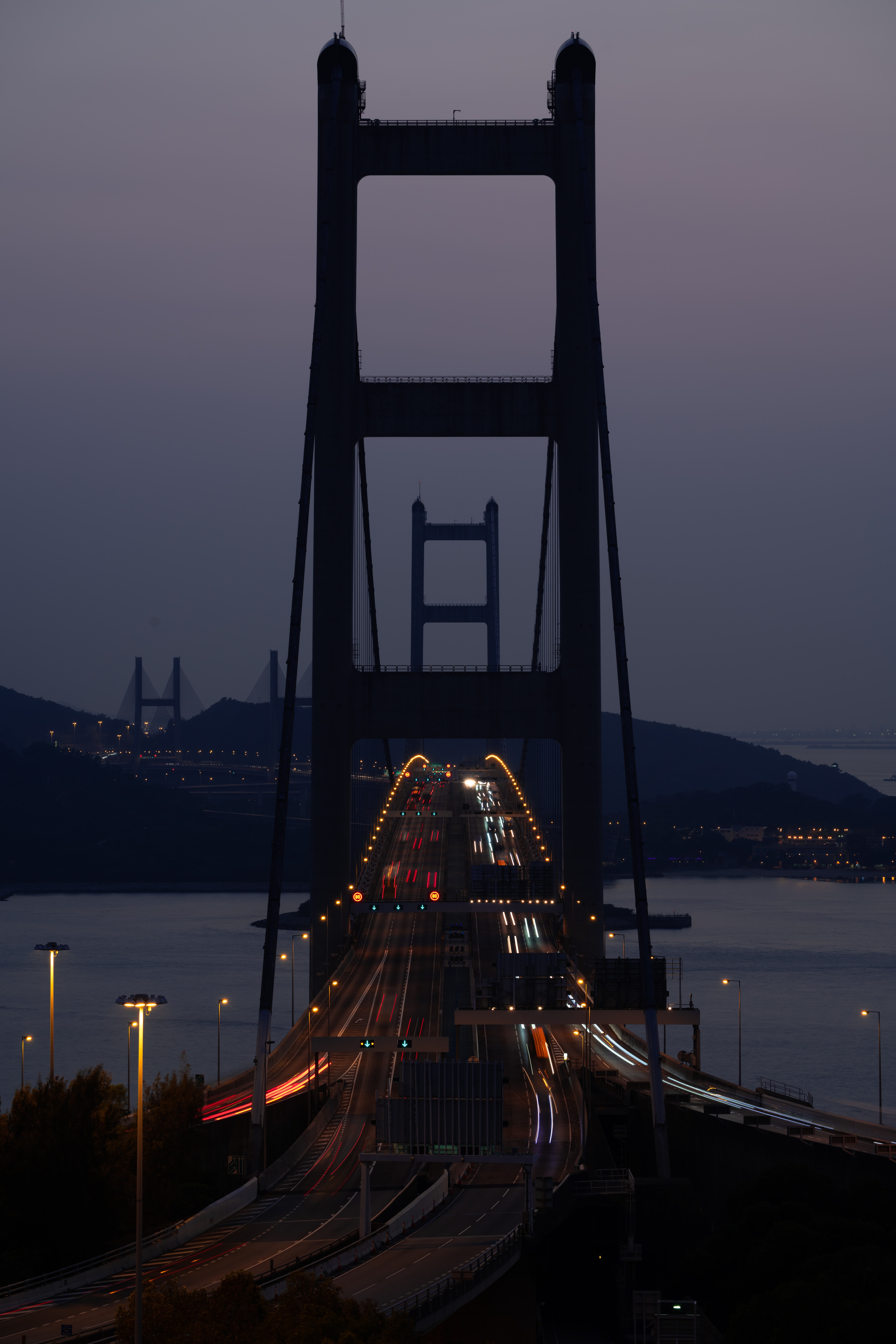 5304×7952 1.80 Mb night lights dark road long exposure bridge