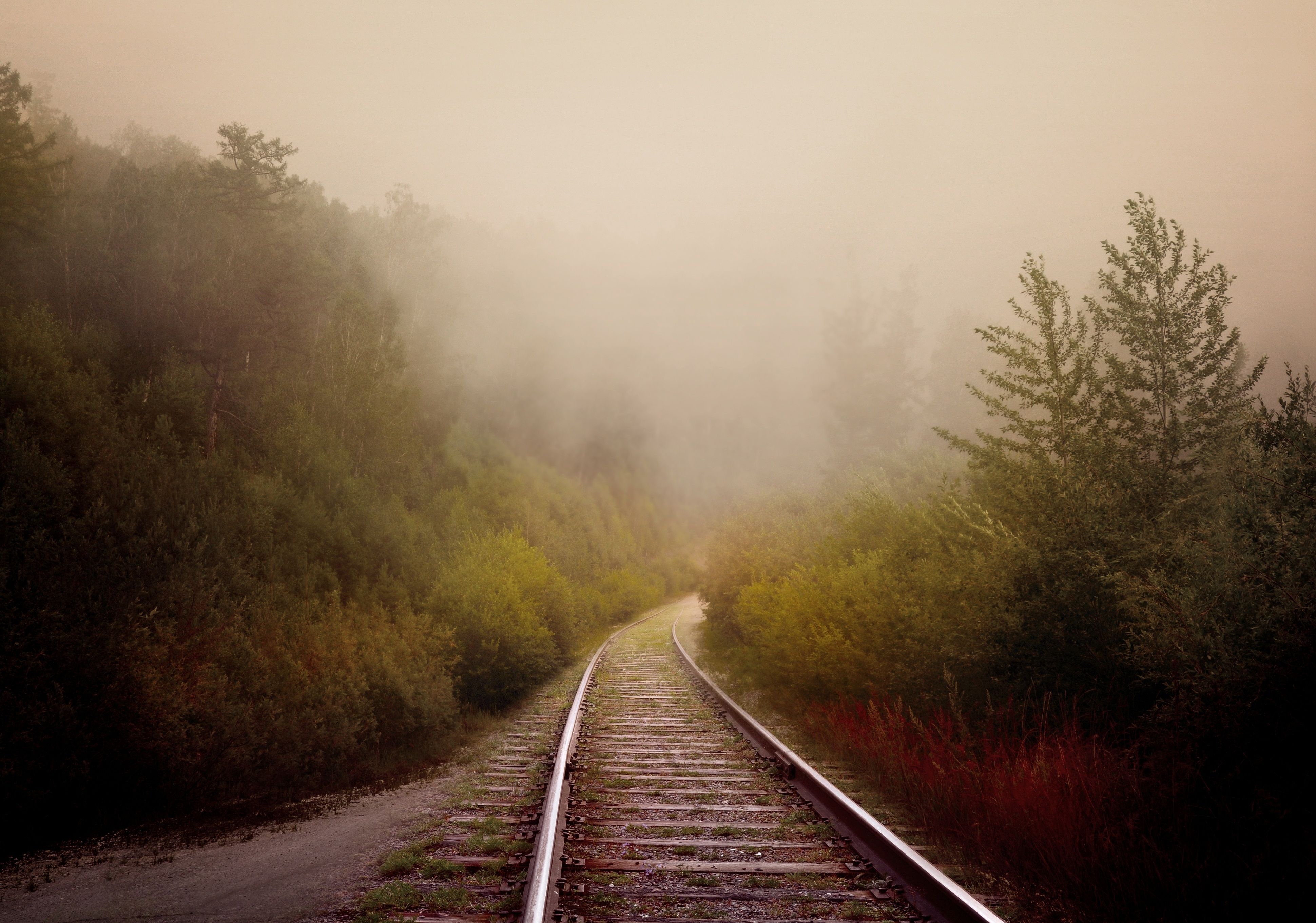 3880×2722 2.80 Mb railway nature trees turn fog