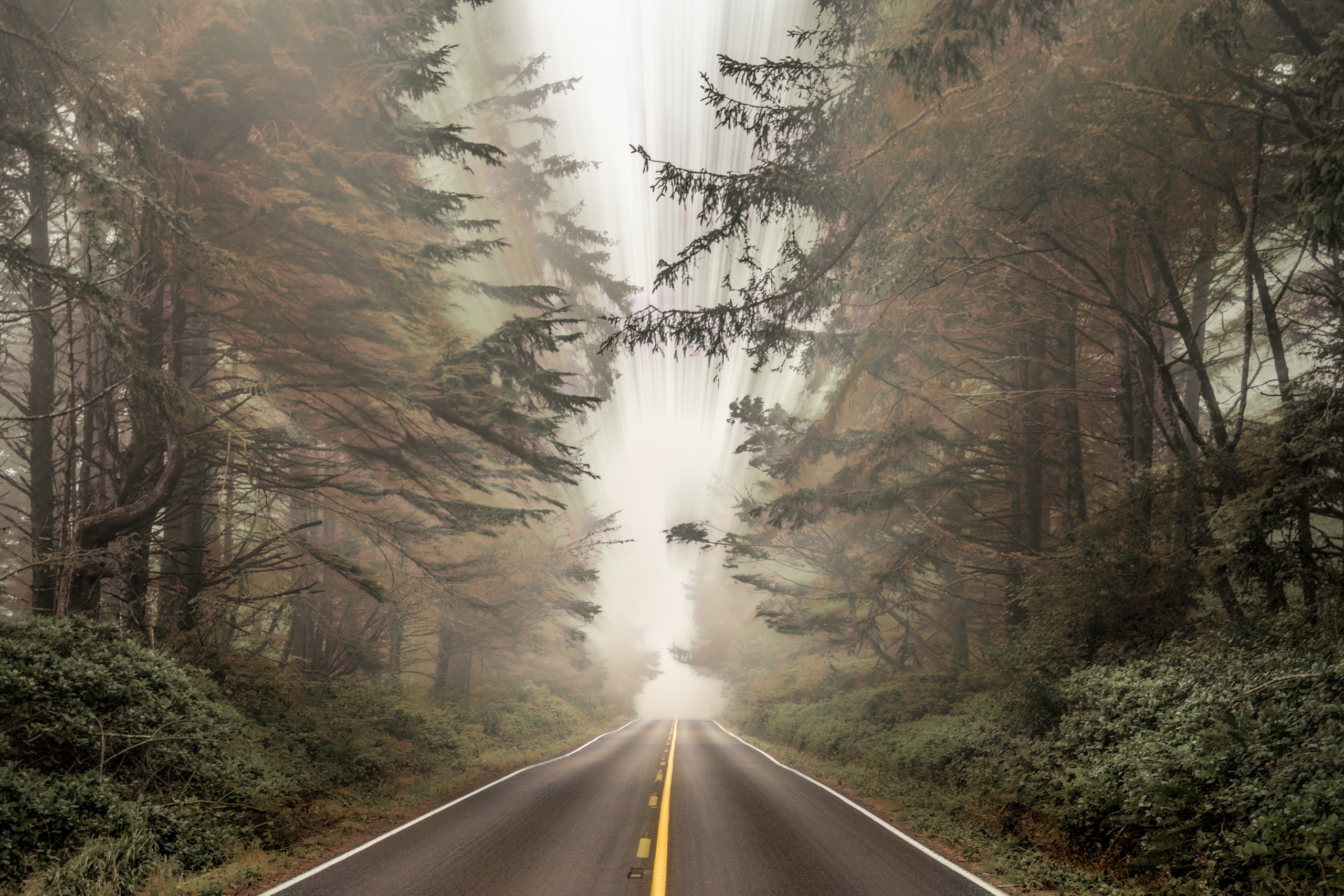 2560×1707 1.38 Mb fog man made road forest nature tree