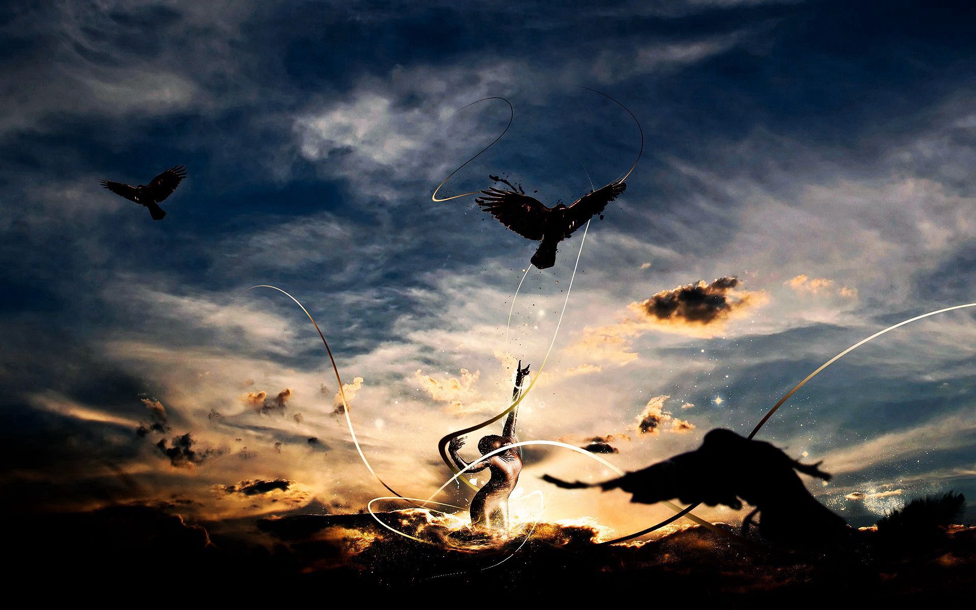 1920×1200 281.81 Kb lines abstract birds sky dance silhouette