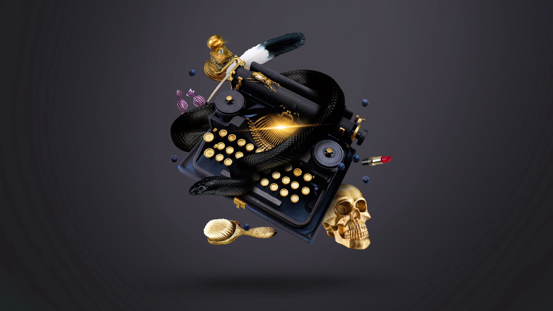 1920×1080 126.34 Kb ink skull abstract snake typewriter witch