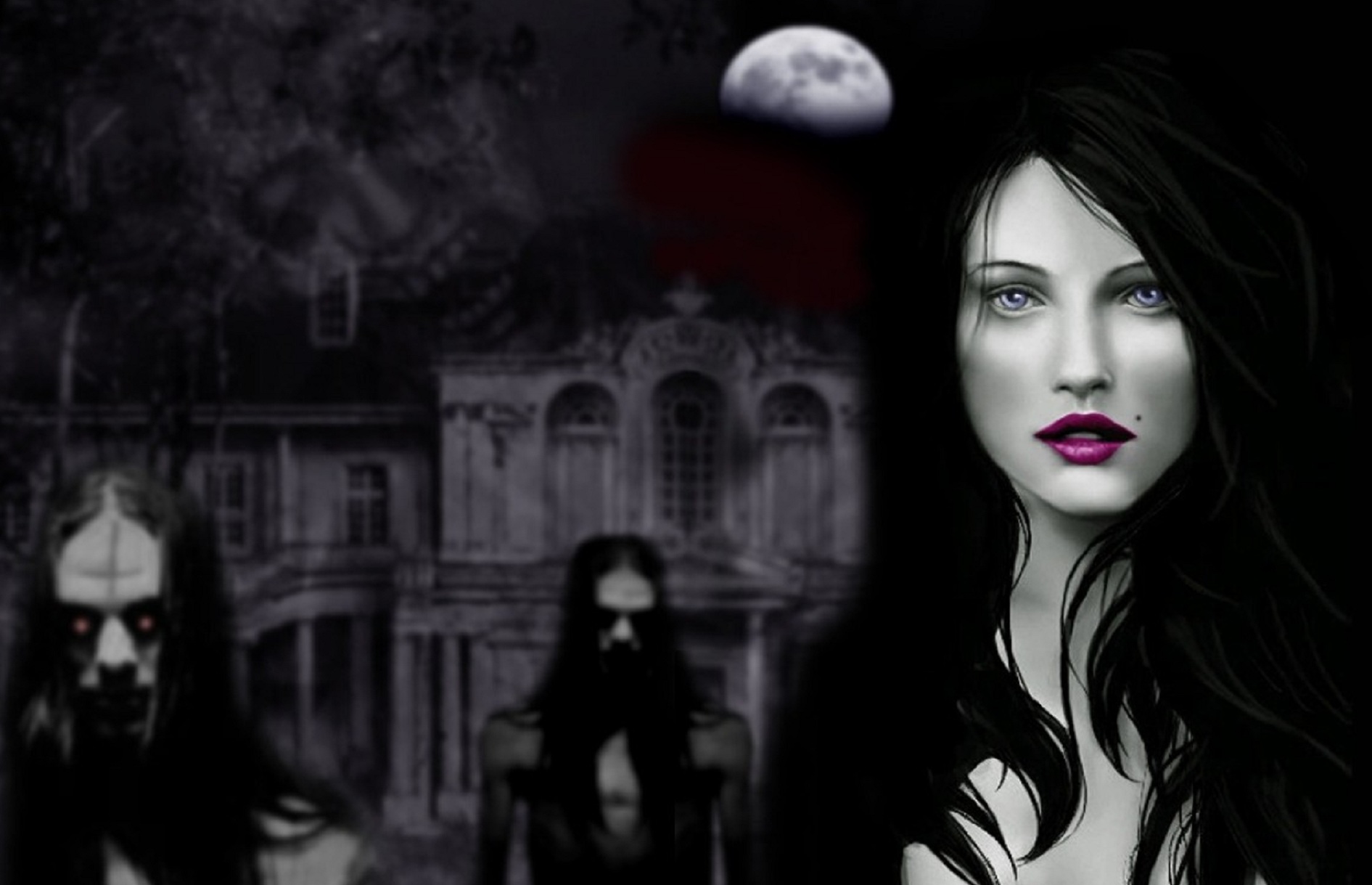 1891×1219 248.64 Kb gothic dark women black hair creepy fantasy moon zombie