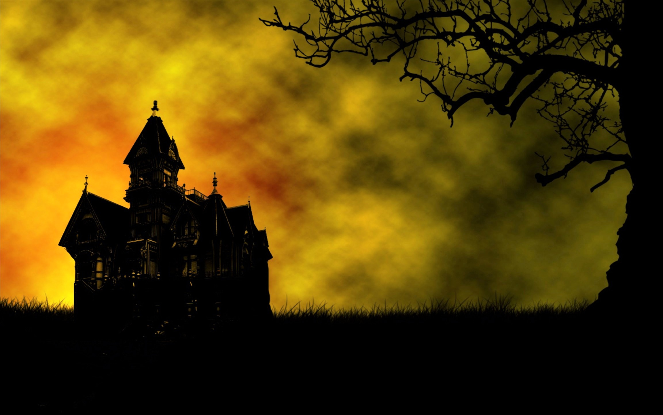dark house haunted house night silhouette tree