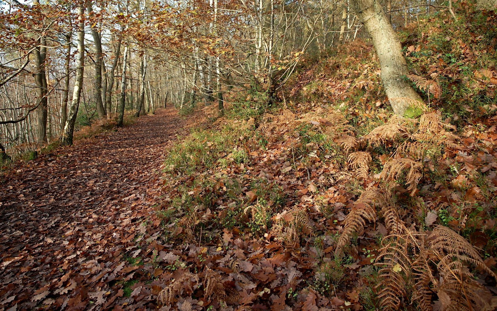 nature autumn leaves fern forest path trail oak