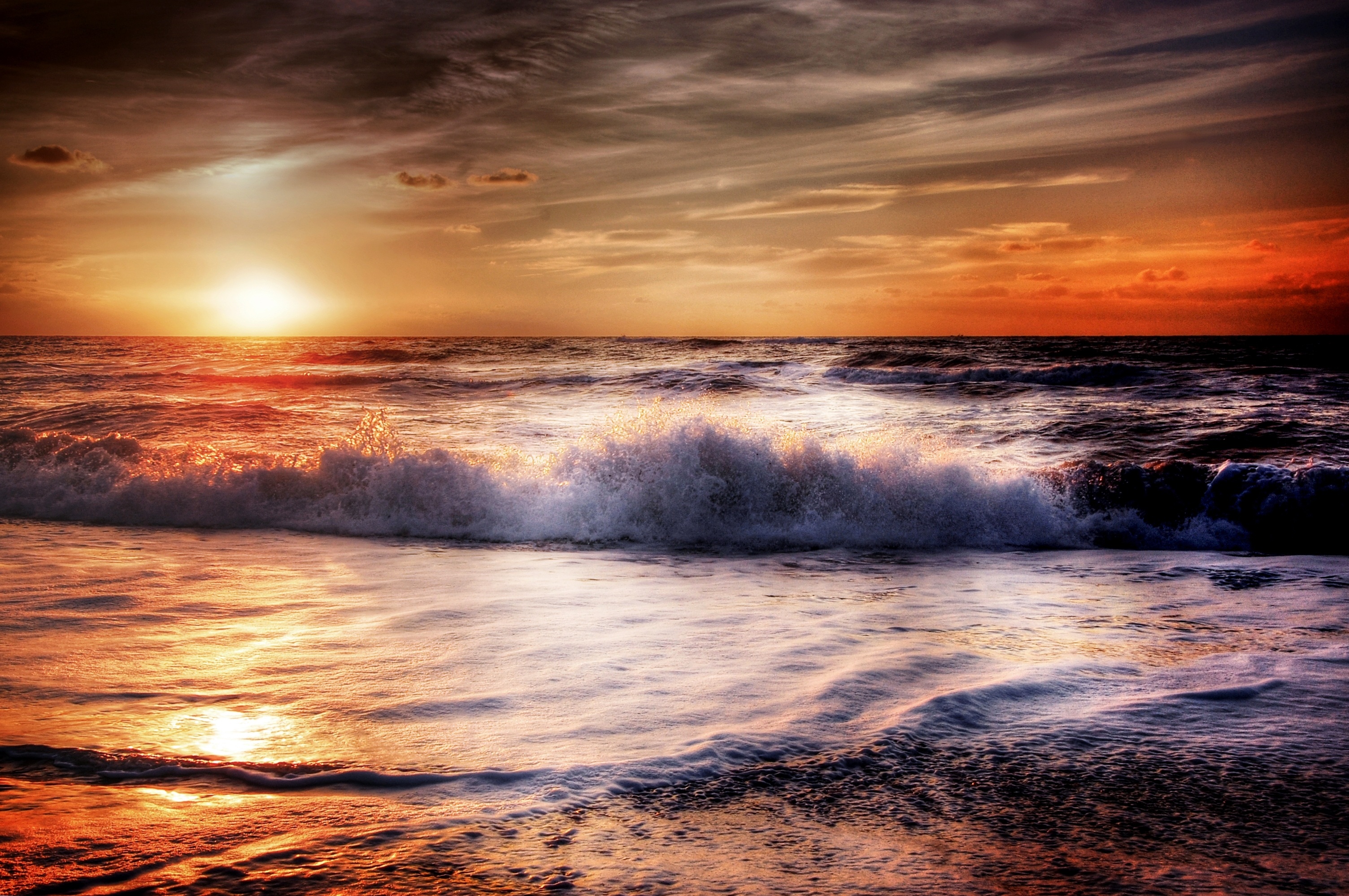 3008×2000 1.83 Mb nature sunset sea ocean foam hdr surf