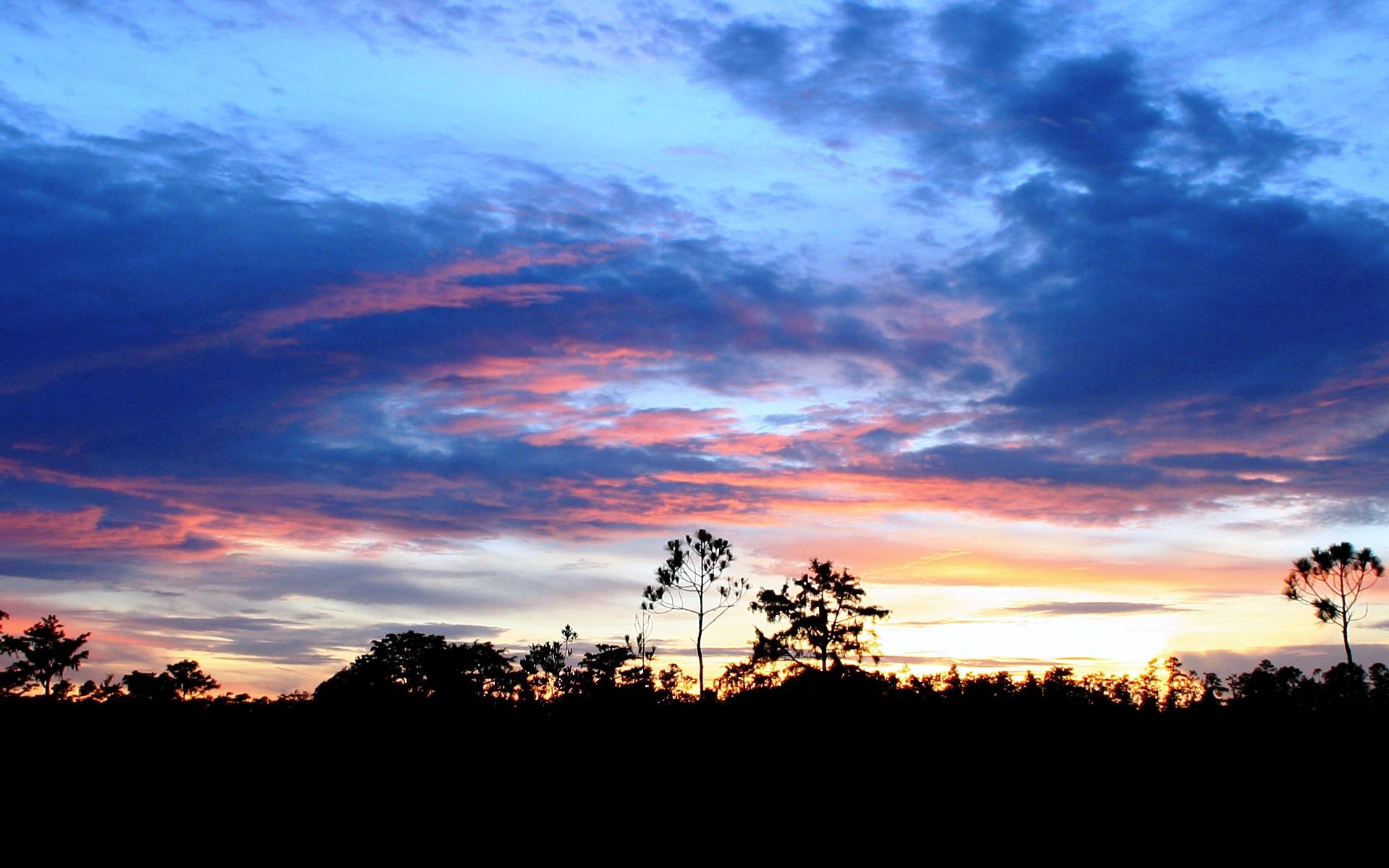 clouds nature trees sunset sky sun patterns horizon outlines