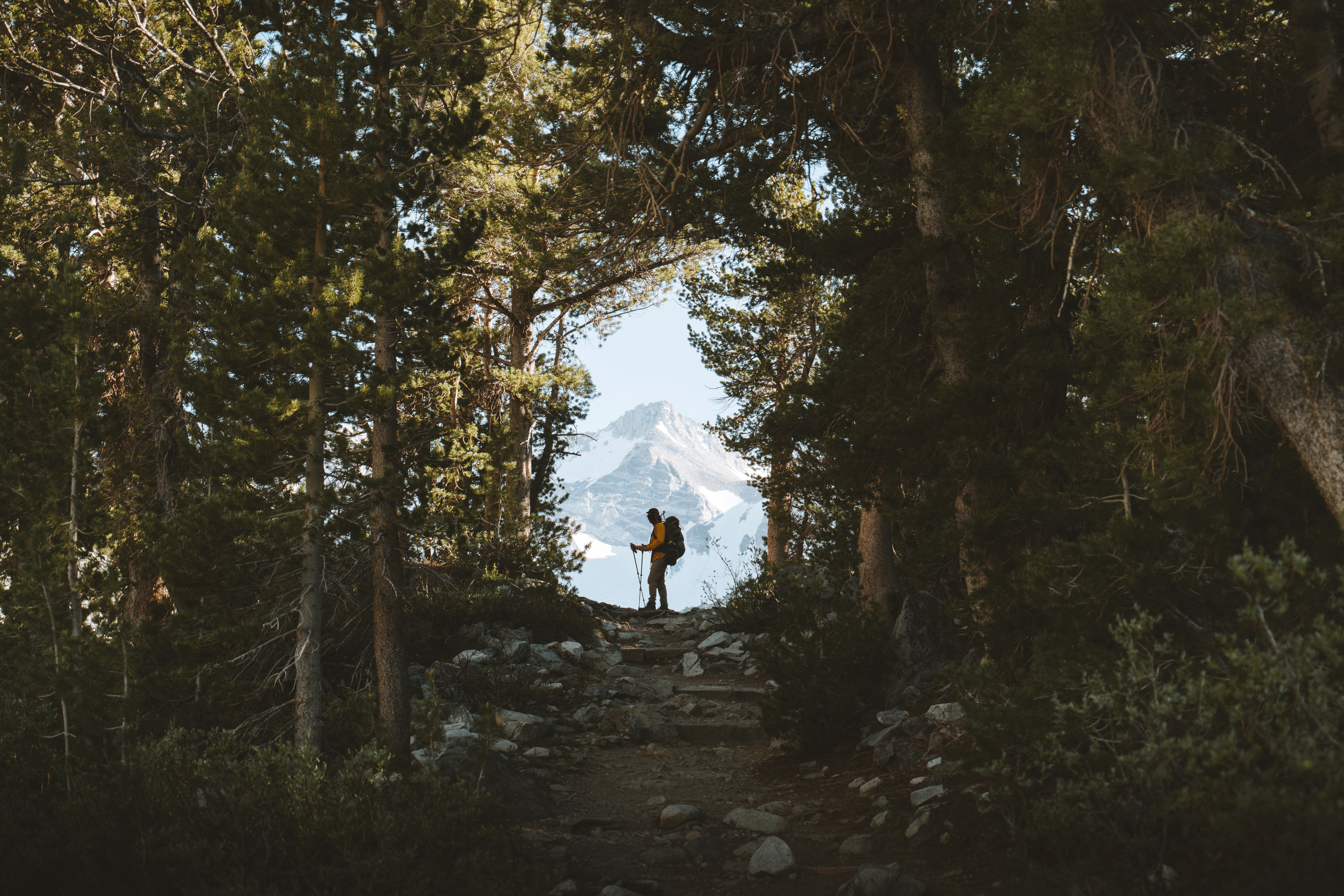 7258×4841 5.79 Mb trees tourist nature mountain silhouette forest