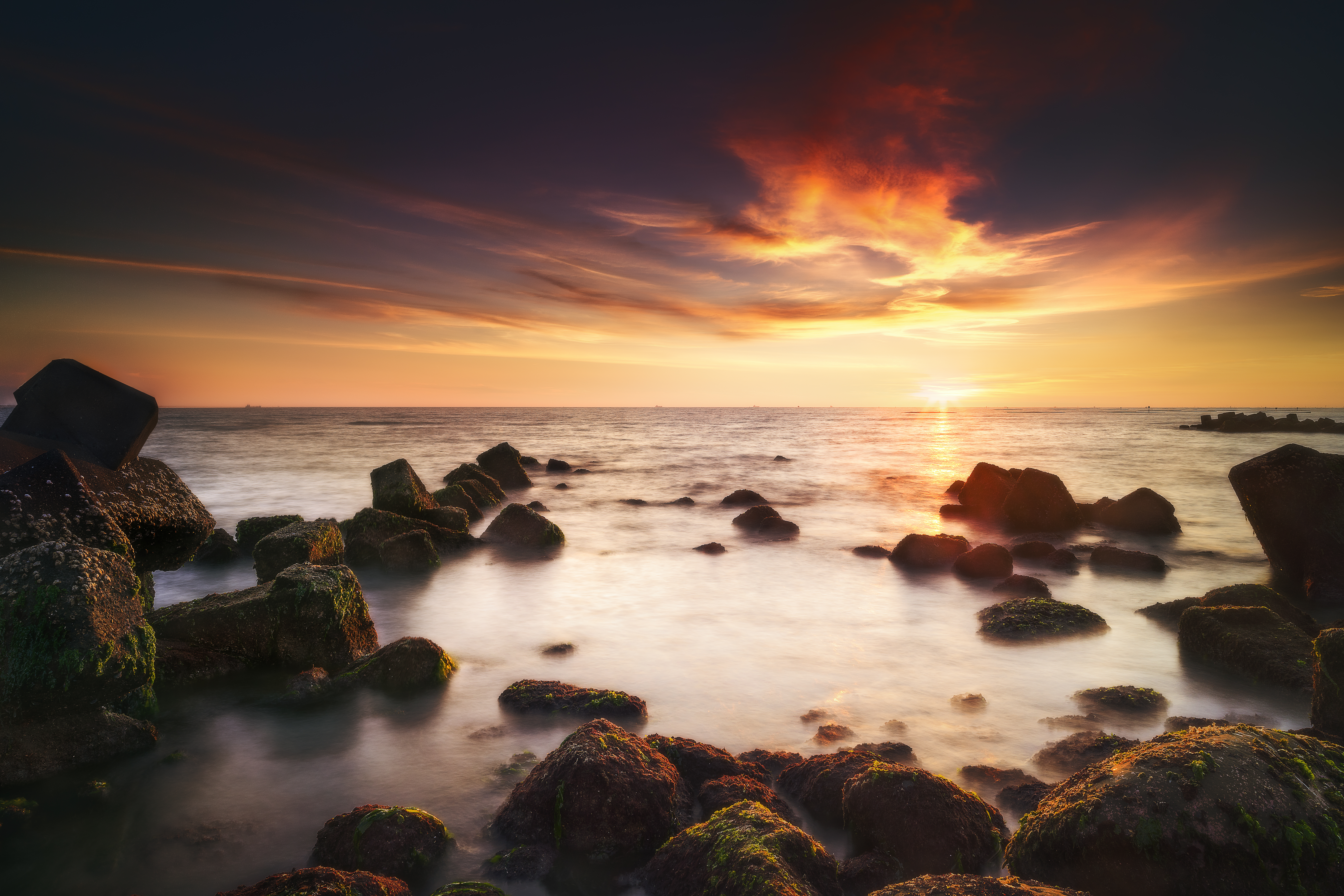 7313×4876 29.67 Mb nature water sunset stones horizon