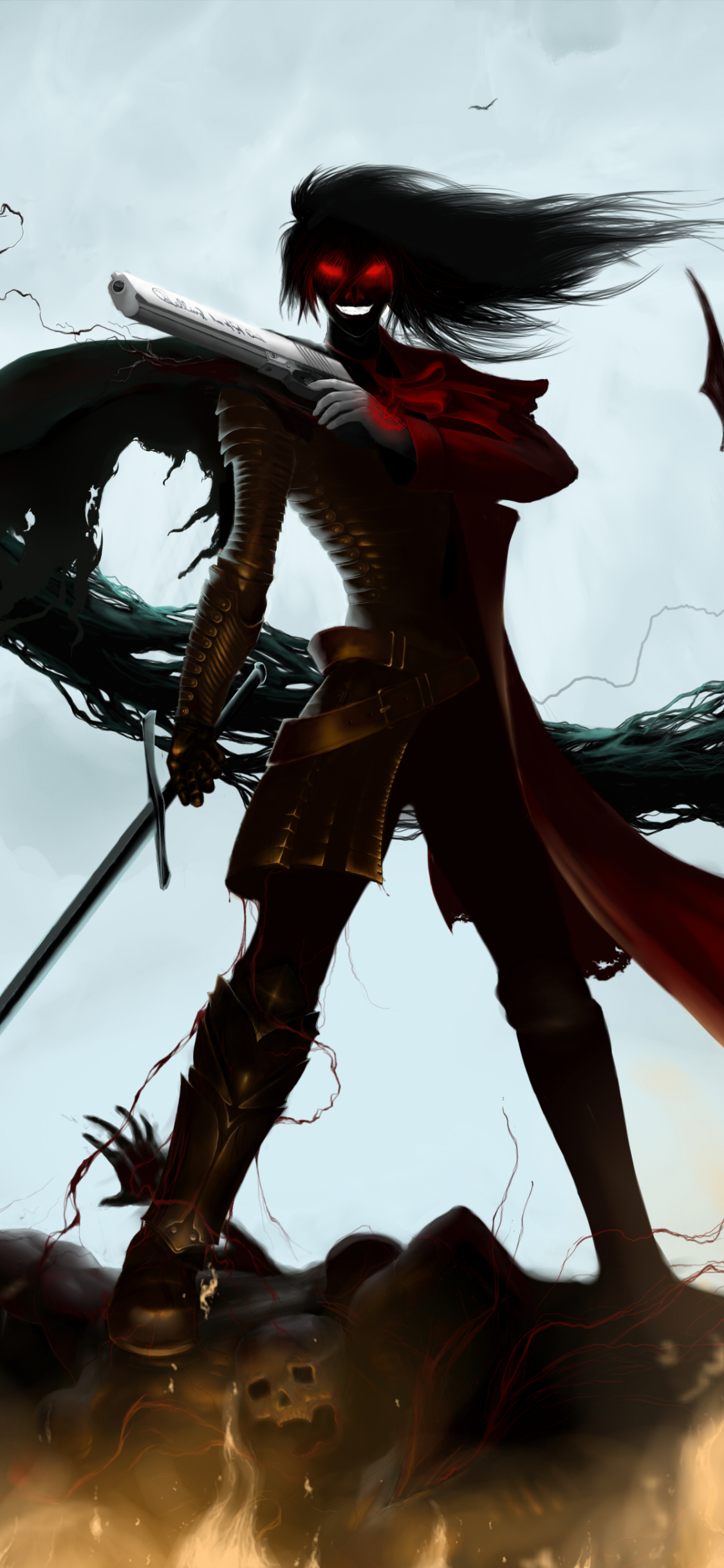 1125×2436 1.56 Mb anime hellsing pistol vampire gothic warrior dark alucard (hellsing)