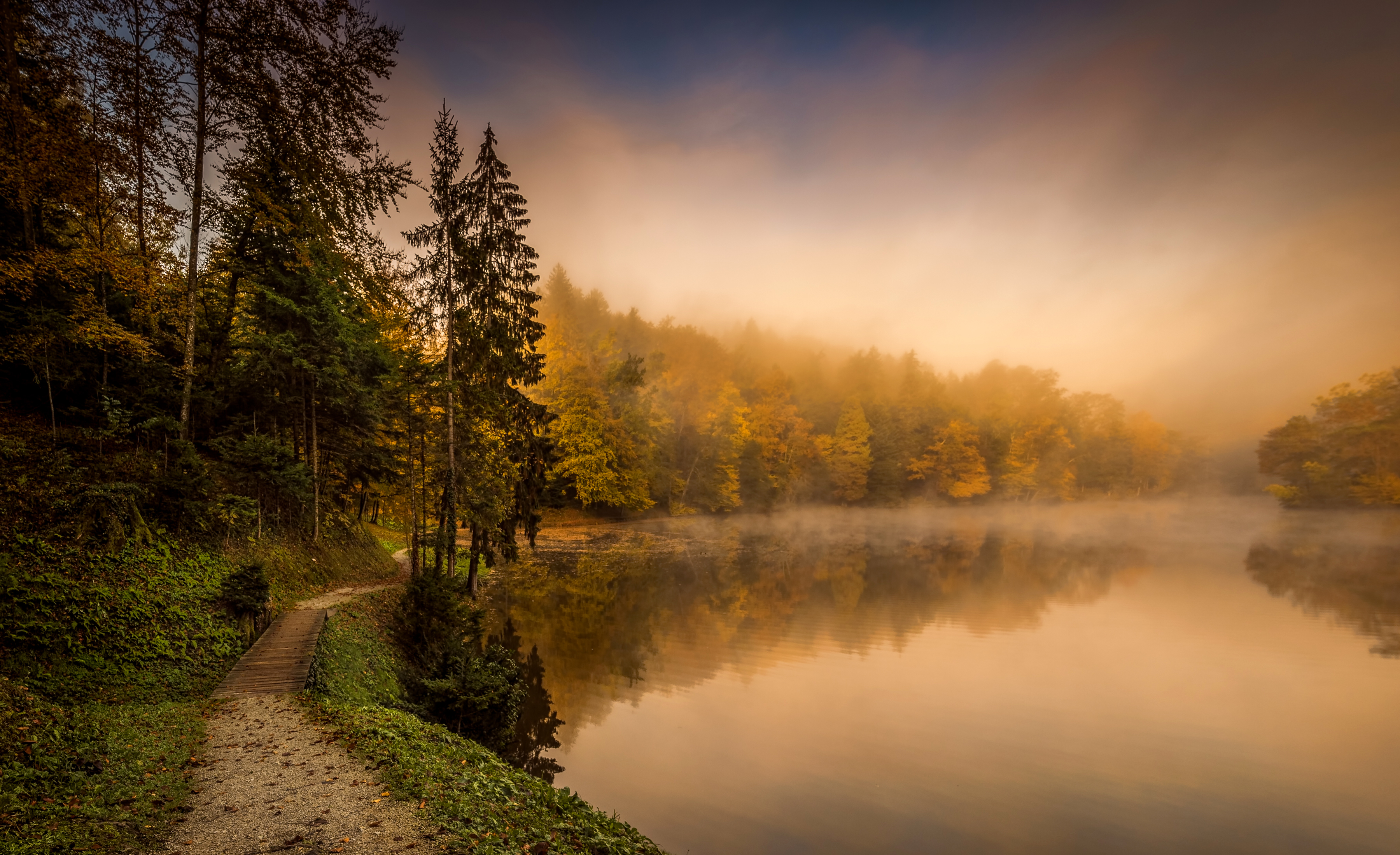 3600×2200 4.76 Mb nature earth river fog forest path reflection