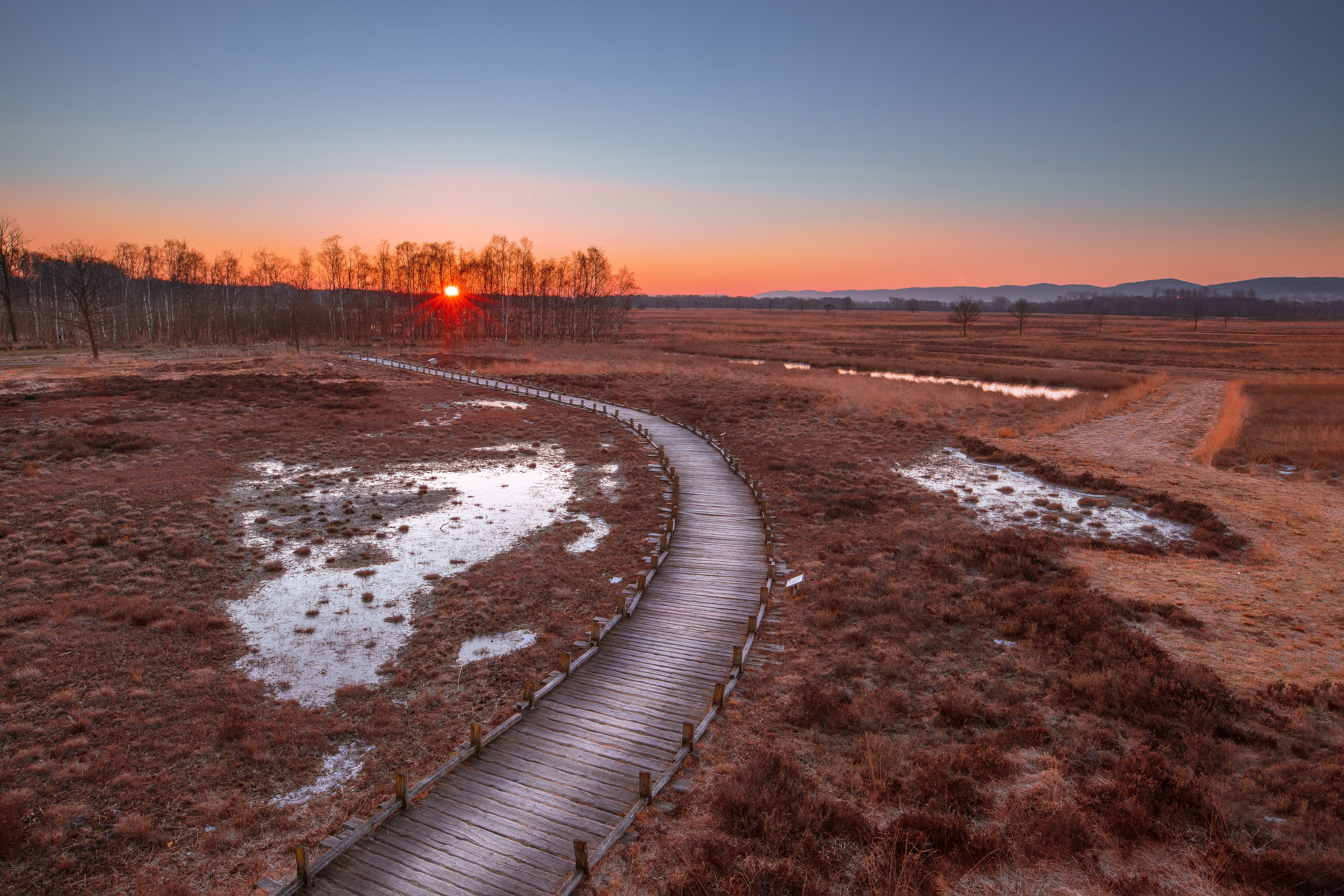 7952×5302 10.44 Mb nature trees sunset grass wood wooden path